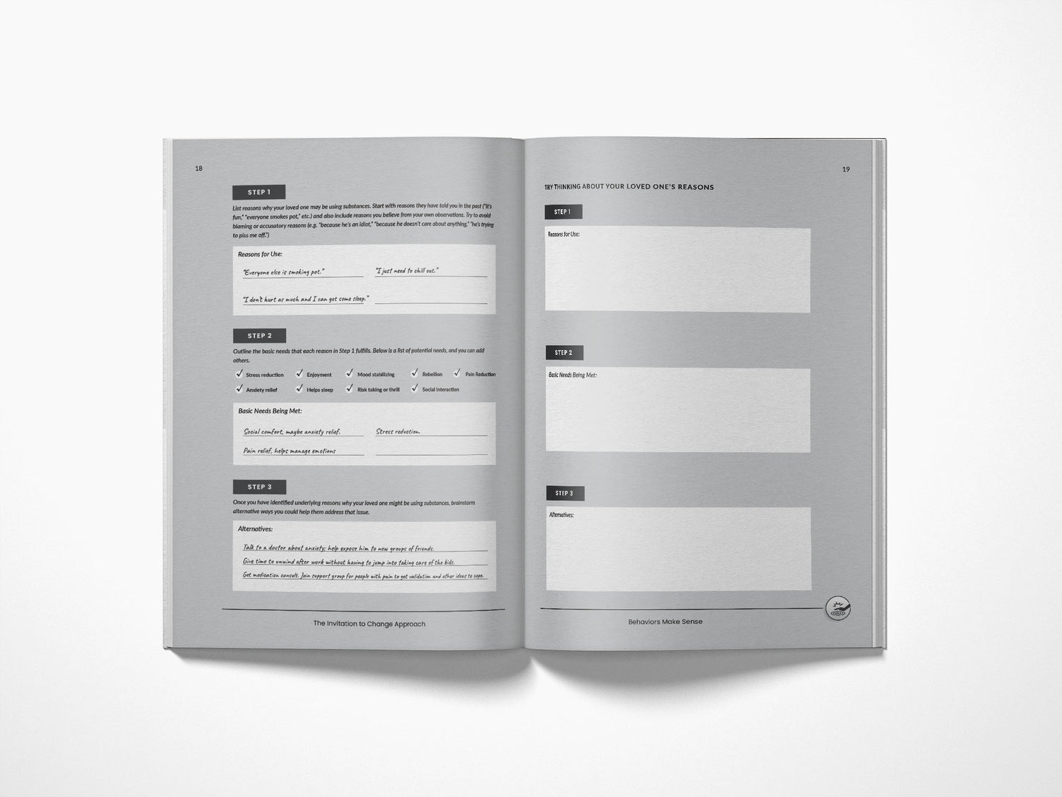 The Invitation to Change Approach© (ITC) is a holistic helping framework based in science and kindness, designed for the families and loved ones of people struggling with substance use. In each chapter, this workbook will introduce you to a key ITC topic—like Behaviors Make Sense, Increasing Positive Behaviors, and One Size Does Not Fit All—and then help you practice with special activities.